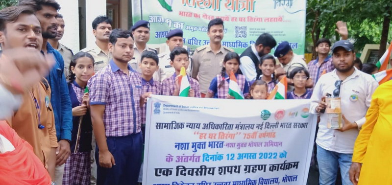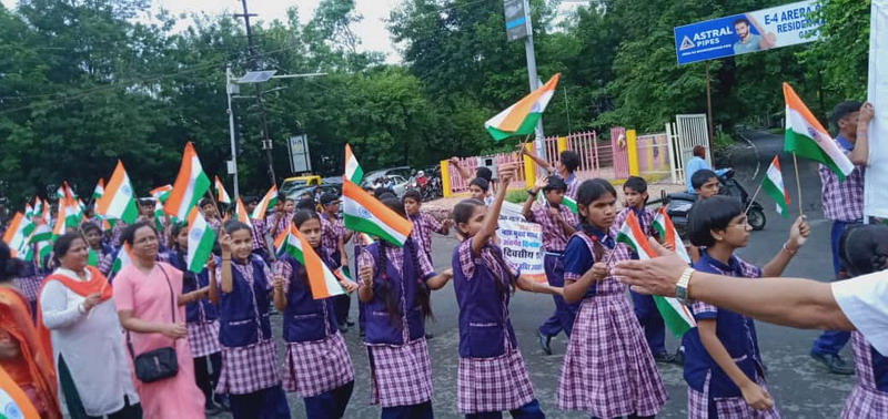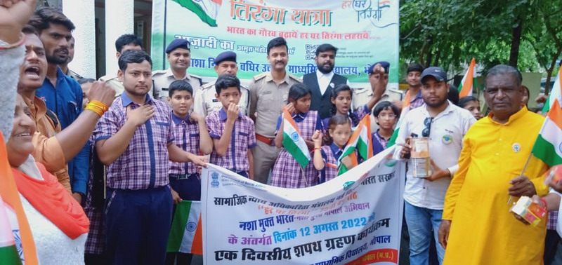 All the participants took a Tiranga each in their hands and proceeded in rally from Asha Niketan School upto Habibganj Thana. During the procession participants raised the slogan Bharat Mata Ki Jai, and Vande Mataram. The main reason for initiating this rally was to spread the awareness of deaddiction (Nasha Mukt). Rally ended by swearing the same oath once again at Habibganj Thana premises.
