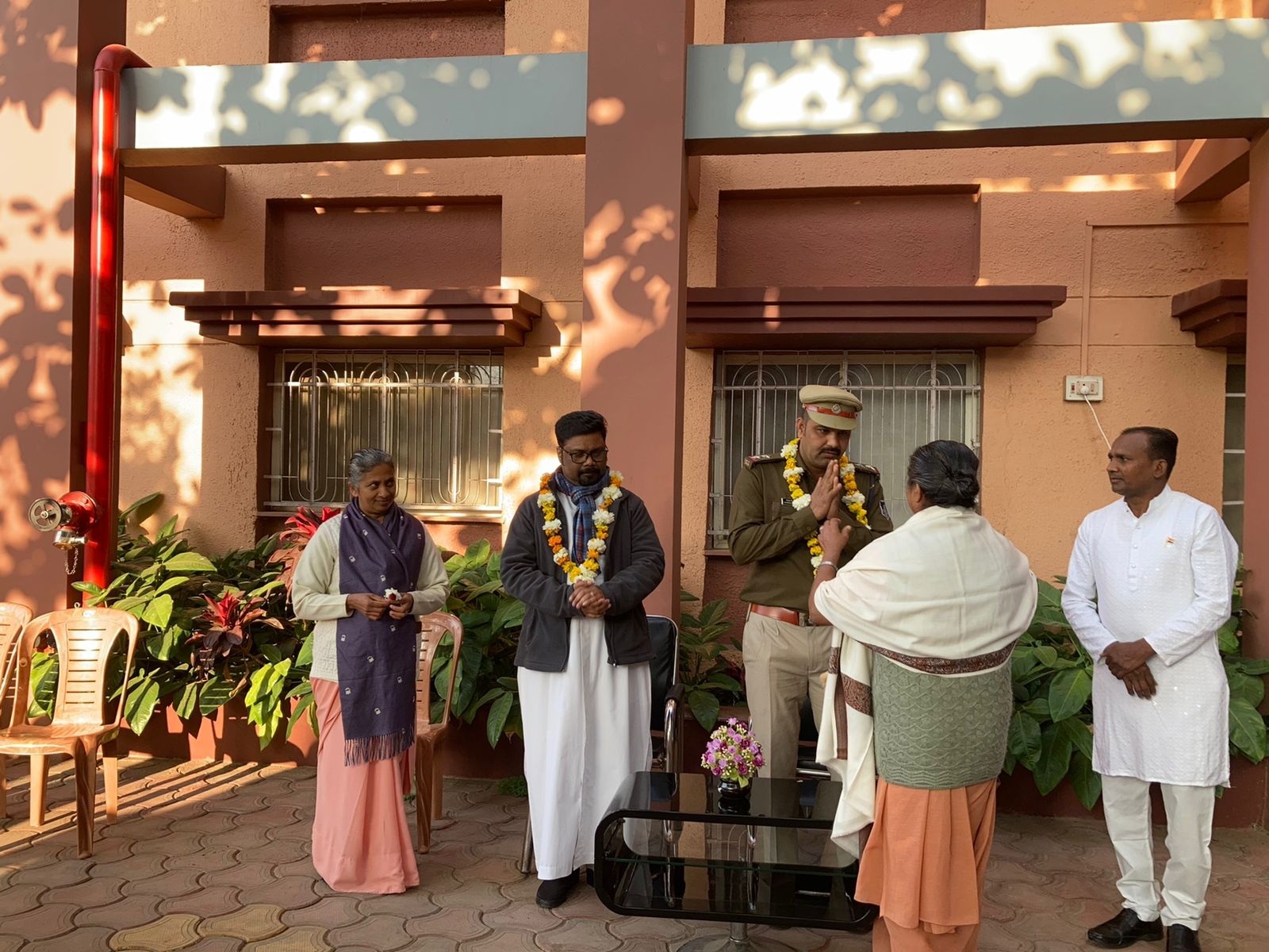 The chief guests were felicitated and welcomed in a traditional manner, with garlanding, tilak, and shawl ceremonies. A group of staff nurses sang a patriotic song to remind everyone of the sacrifices made by the country's freedom fighters. Following this, the chief guest hoisted the flag and delivered the speech.