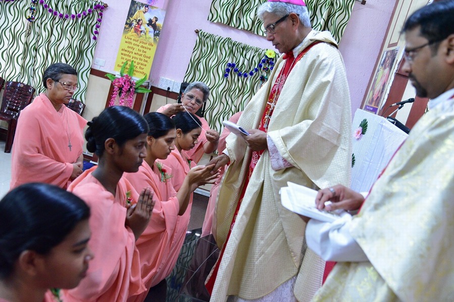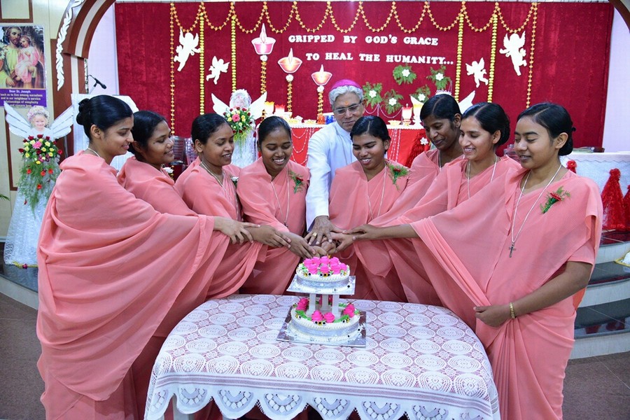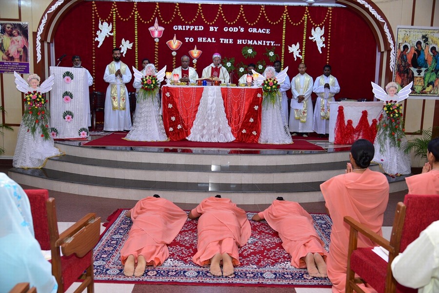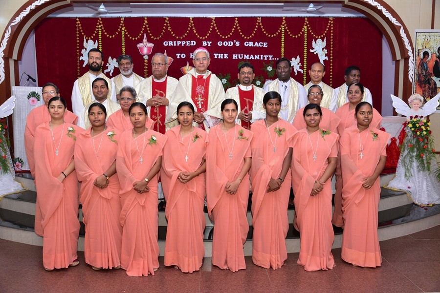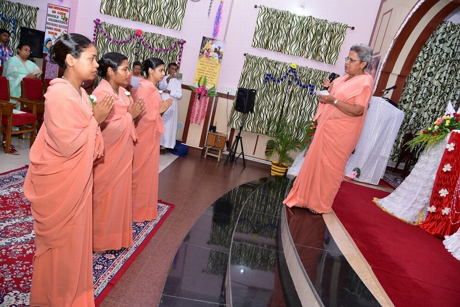 Saturday 02 June 2018 was an auspicious day for the Province of Tanmaya as three tertians made their Final Commitment and five novices professed their First Vows in the Provincial House, Tanmaya, Bhopal, Madhya Pradesh, India. Different stages of formation enabled these young sisters to experience that they are “Gripped by God’s Grace to Heal the Humanity,” the theme chosen by them. The entire ceremony was held in the presence of Most Rev. Dr. Leo Cornelio, the Archbishop of Bhopal, Provincial S. Prabha Malayil, Priests, brothers, sisters, relatives and friends.