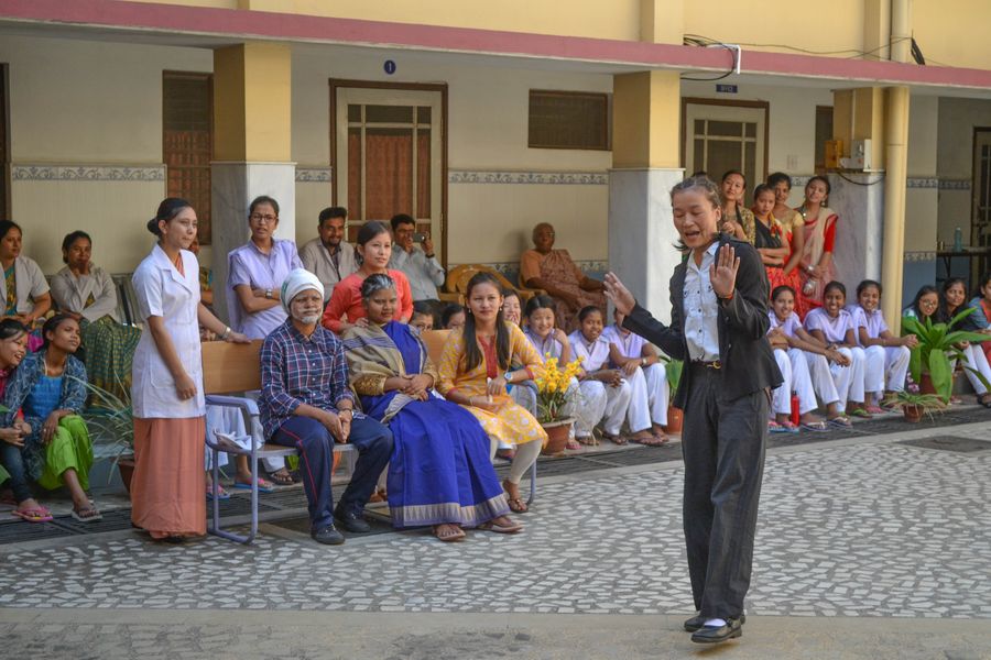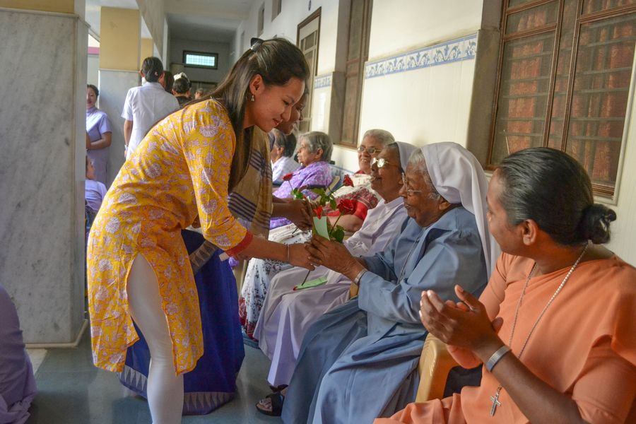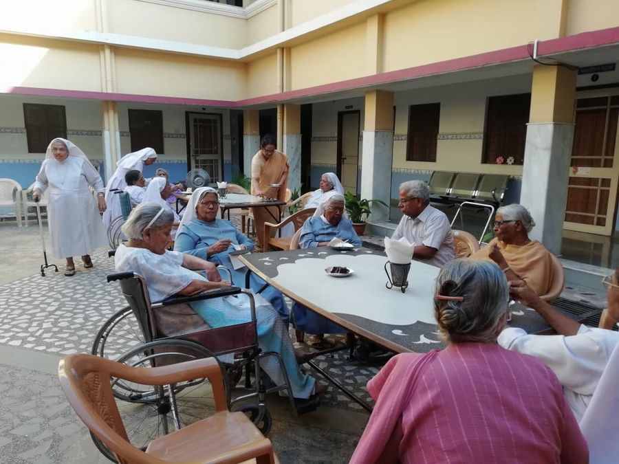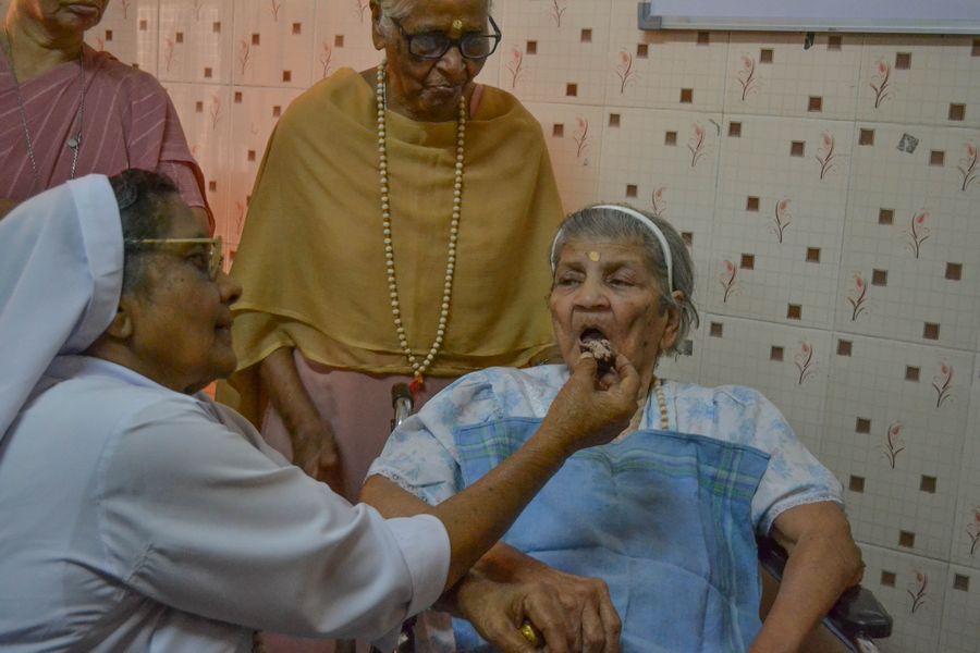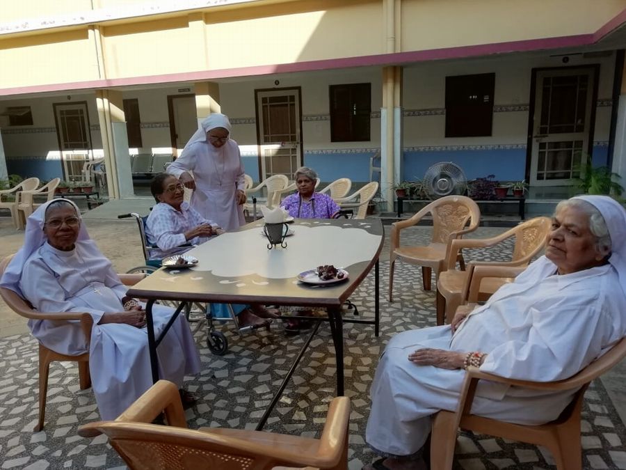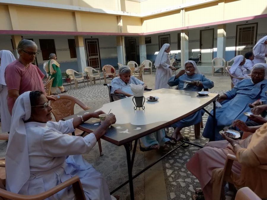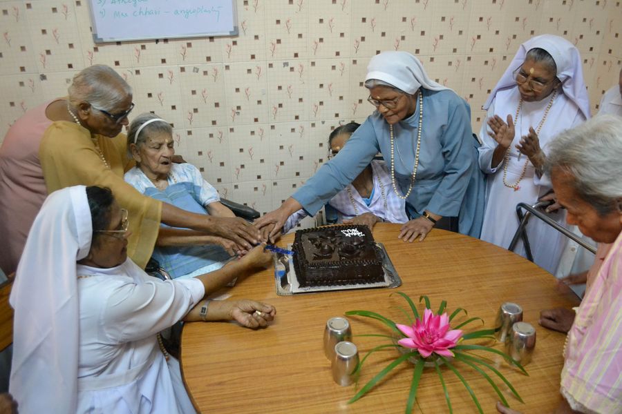 On October 1st the elderly sisters of Asha Niketan Community, Bhopal were honoured and felicitatedas it is the International Day for Elderly People. The day commenced with the nursing school students performing an entertainment program for them. Their lively performance made even the 98-year-old S. Ann Charlotte dance. The community paid tribute to them at a special prayer service conducted at 11:30 a.m. The dinner together with the whole community of Asha Niketan at 12:30 p.m. was marked with cake cutting and special items served for them. At 4:00 p.m. the sisters and others from Asha Niketan Campus was invited for a special tea party to honour the elderly. The celebrations expressed the strong message that we care for them and appreciate them for their valuable contribution to the world, the church and the congregation.