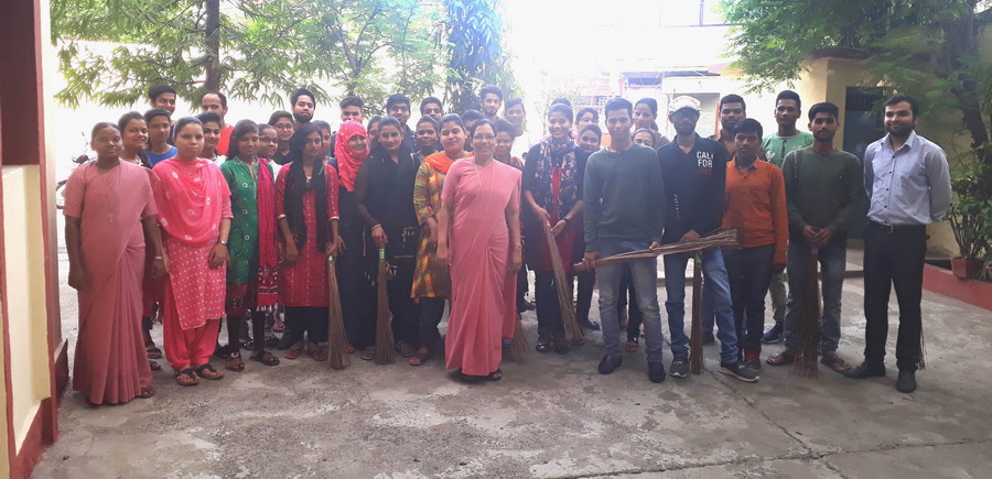 Sr.Smitamade the students aware ofClean India Campaign and benefits of cleanliness and hygiene; dumping of wastage, disadvantages of using plastics, scavenging of house and streets, roads and other infrastructure were also issues discussed. Local people also joined us.In our Campaign, the Parshad (Ward In-charge) joined us to encourage people of local area & students and staff. We were amazed to see the children and the people of the area to joining our campaign.The staff and students of Institute used many slogans on SwachhaBharatAbhiyan during the campaign.