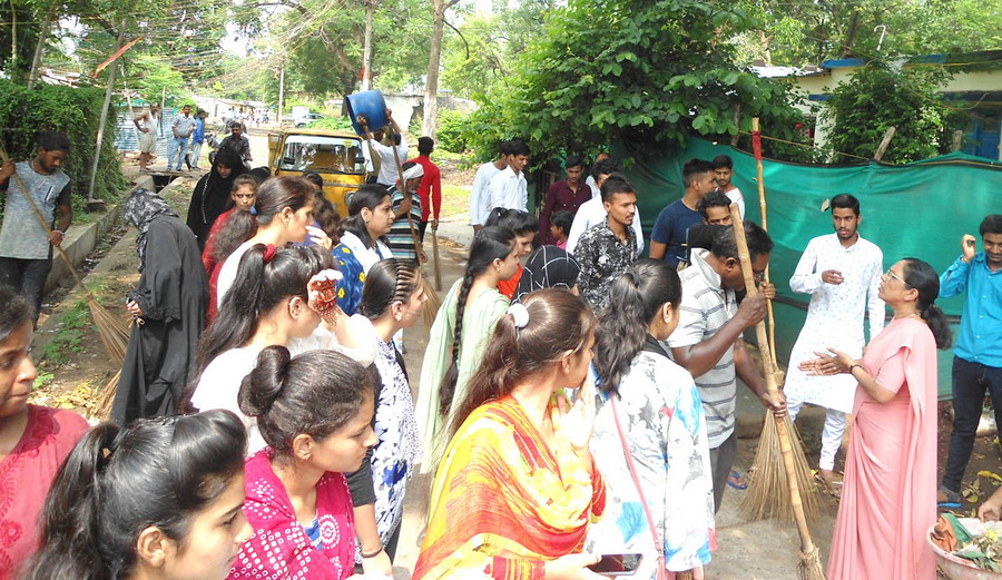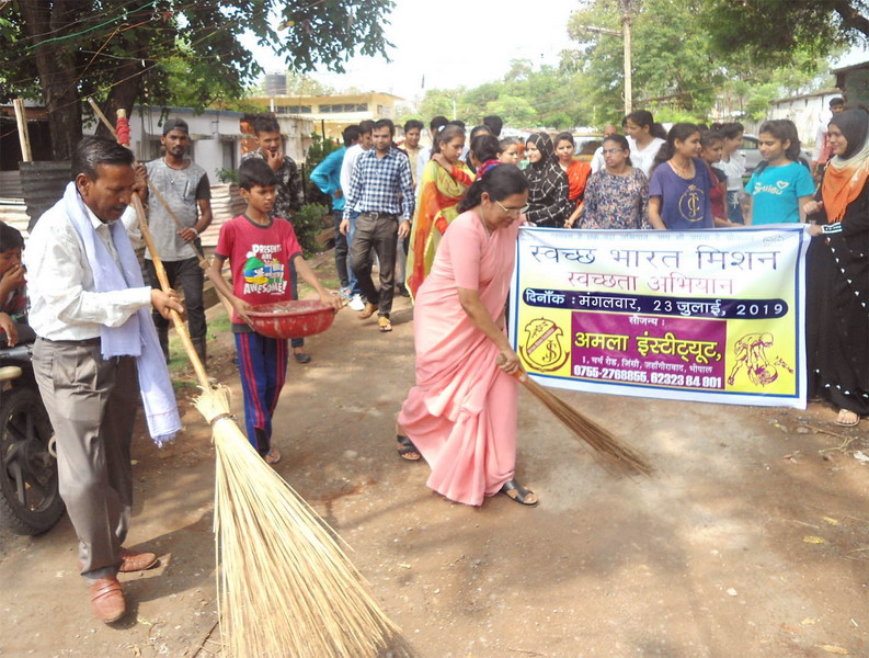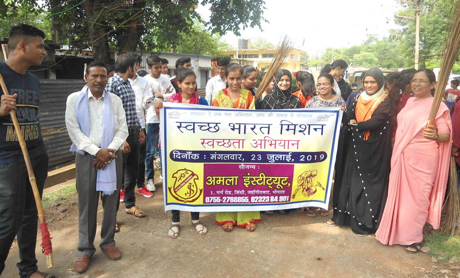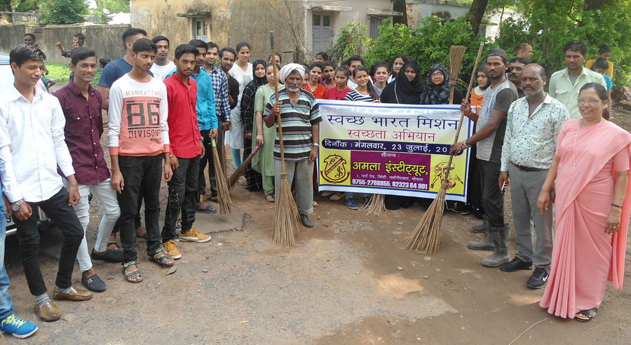 Tuesday, July 23, Amala Institute, Jehangirabad, Bhopal, organized in-campus & off-campus "Swachha Bharat Campaign" at Govindpura, Bhopal with staff and students to keep India Clean and Green. The Director S. Smita Mathew, Staff and Students participated very actively with great fervor and joy. It is a cleanliness drive aimed at the backward statutory towns all over India in order to clean the streets, roads and other infrastructure.