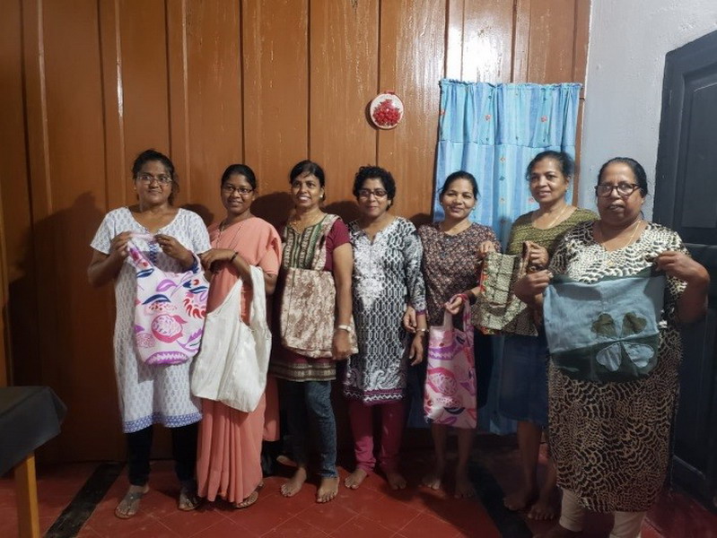 Mrs. Maria Fernandesa trained seamstress, was the Resource person who gave her time and voluntary services, and taught the group to make different types of cloth bags, out of old clothes e.g. sling bags, shoulder bags, drawstring bags,and pouches.