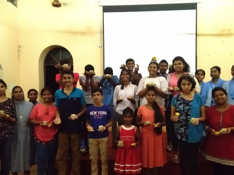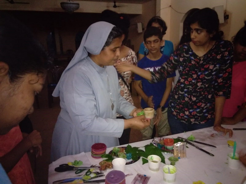 Sr. Lidia (Franciscan Sister) along with the Sisters of St. Joseph of Chambery, cleaned up the old wax. The youth were taught to use paper cups as a mould, and cooled candle wax to shapes of roses and petals. Trial and error method enabled theparticipants to bring out the best in them. All were satisfied to learn this art, and the joy of togetherness, and being creators of beautiful candles from used wax, enlightened the youth of bringing “WEALTH OUT OF WASTE”
