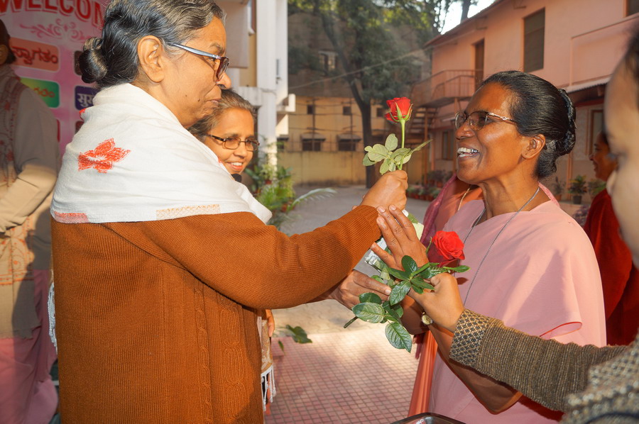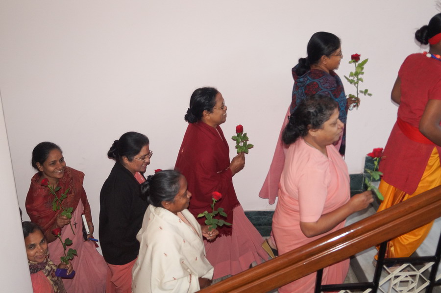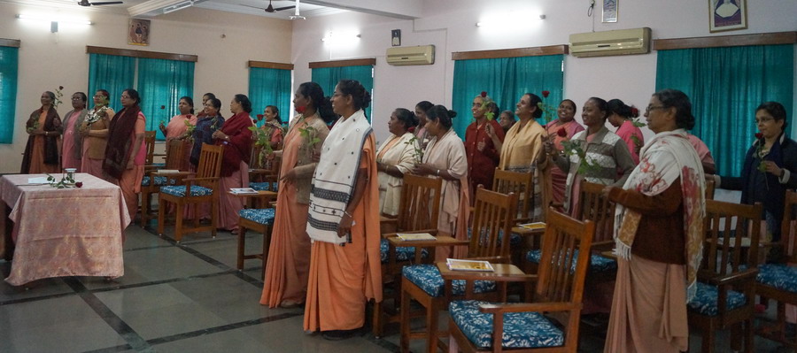 From 7 to 9 December 2019 the sisters who made their first vows from 1987 to 1995 came together at Snehalaya, Nagpur. All the 31 participants were given a red rose each and warmly welcomed by the sisters of Snehalya and they lead the group to the conference hall through a tribal dance. Sister Philomena Pichappilly the Provincial of Nagpur Province welcomed the sisters of the four provinces of India.Sister Sunanda Tete conducted a prayer service on being moulded and shaped by the Lord. Each one was asked to carry a mud pot and place it at the photo of Fr. Medaille representing their own experience of being formed by the Lord in the congregation. This created a reflective atmosphere in the group.