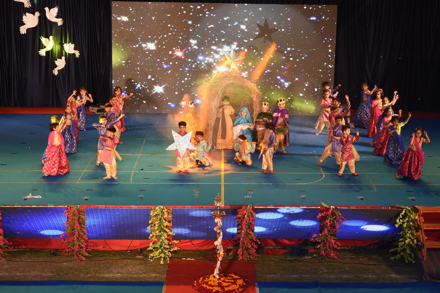 U.K.G. students depicted the unity in diversity of India highlighting “Carnival of Festivals” through performing dances based on Lohri, Eid, Paryushan Parv, Diwali, Holi and Christmas.