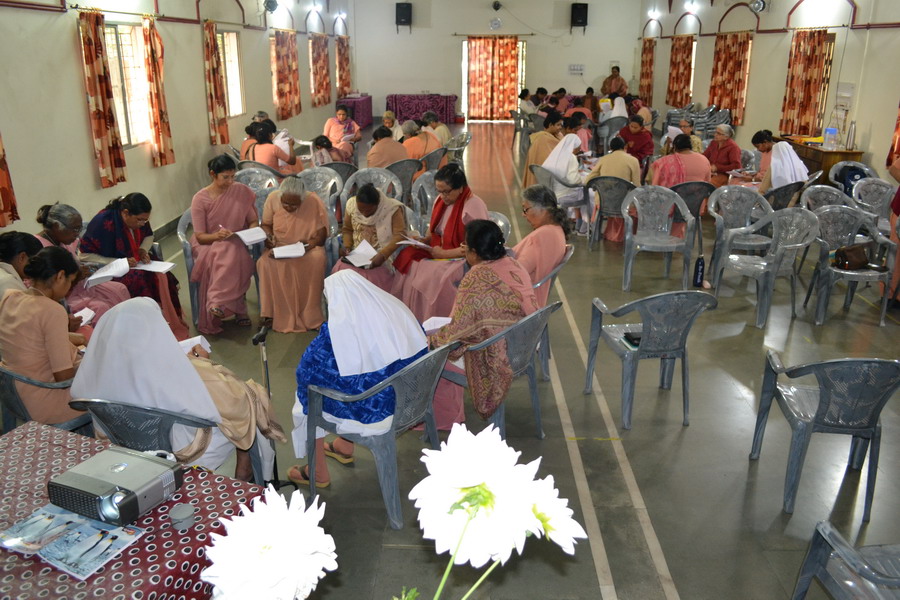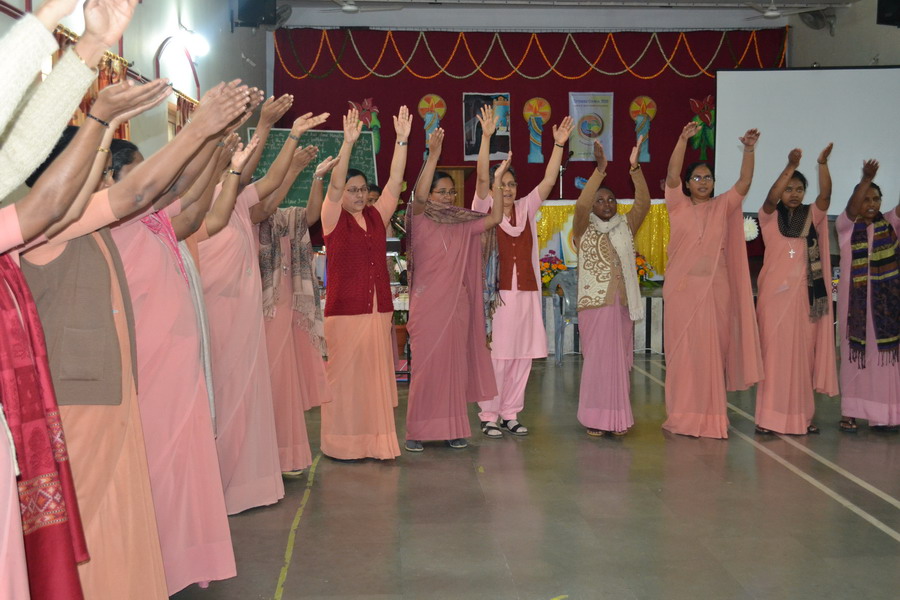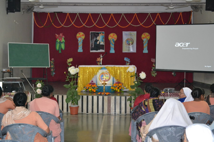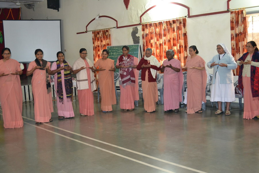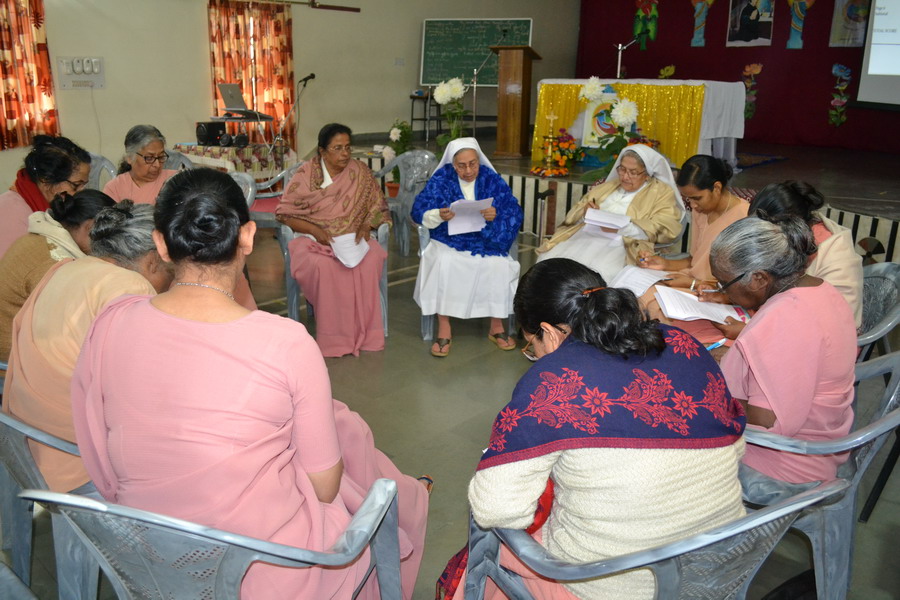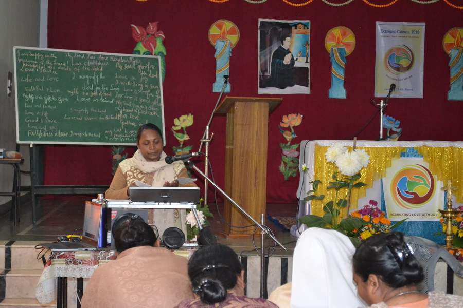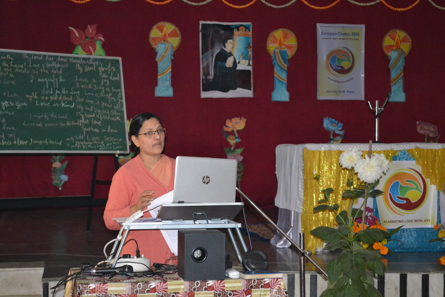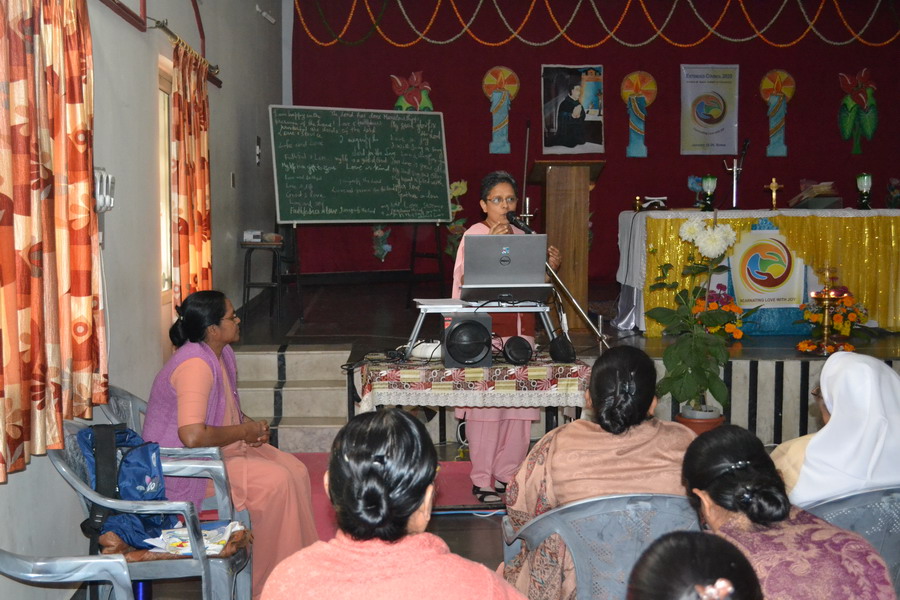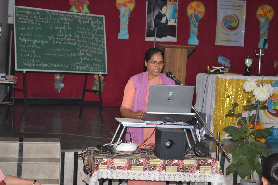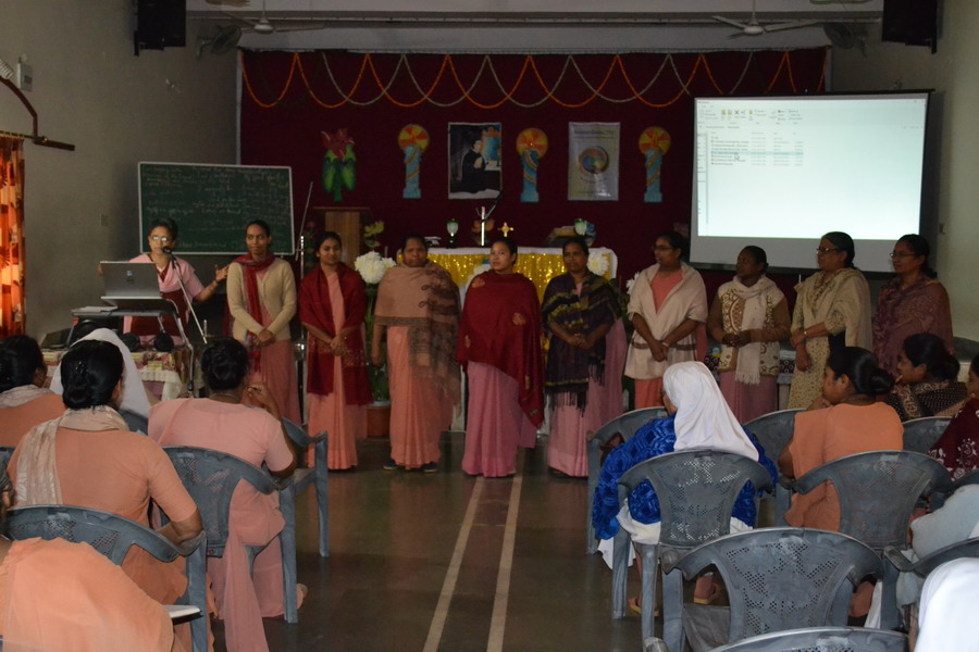 Sunday, 23 February 2020 the Provincial team Sisters Annies, Navya, Rohini and Shobha shared about the Extended Council 2020 – Rome, with the sisters of Bhopal region at Marian hall, Bhopal. The day began with a meaningful prayer service conducted by the team. The prayer was based on the theme of extended council, “Incarnating Love with Joy”. It was heart touching as the sisters went around embracing each other and sharing the experience of love with one another.
